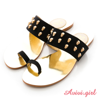 Avivi girl 個性輕甜骷髏頭夾腳平底涼鞋(黑)商品網址: