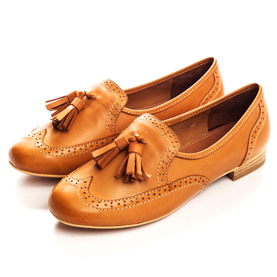 ALLEGREZZA?真皮流蘇樂福鞋-駝