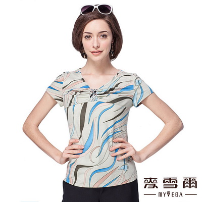 麥雪爾 斑駁紋路貼鑽短袖上衣