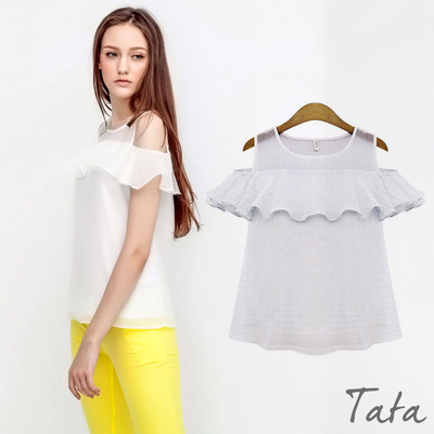 露肩荷葉邊寬鬆短袖上衣 TATA商品網址: