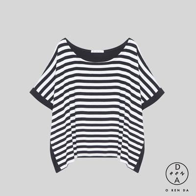 ORENDA-MIT輕柔感條紋罩衫上衣-S.M-黑