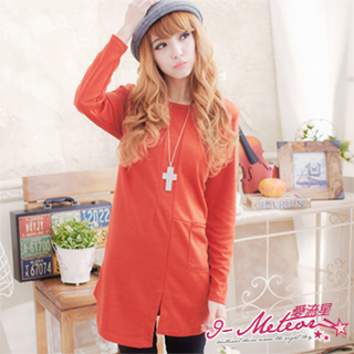 【I-meteor中大尺碼】質感時尚厚棉傘狀長版上衣(暖橘色)