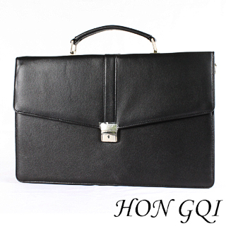 【HON GQI鴻奇皮件】黑牛皮荔枝紋壓紋蓋面插扣定型提把造型肩側背公事包(可放置平板/NB/拆卸式背帶)