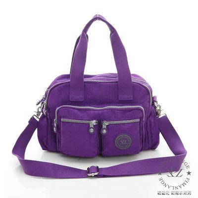 夏日繽紛系列~輕量化防潑水尼龍多口袋波士頓包-紫