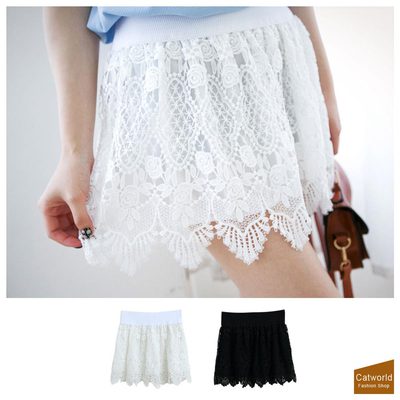 Catworld 花邊布蕾絲腰鬆緊短裙共二色
