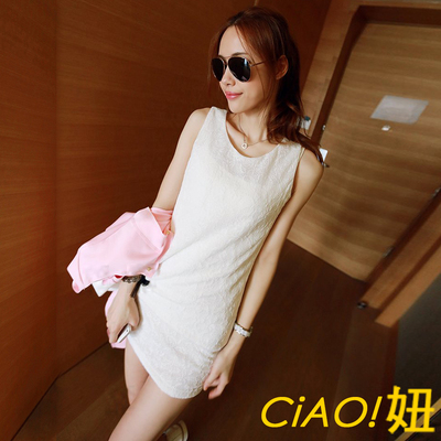 立體感蕾絲印花背心連身裙 (白色)-CiAO妞