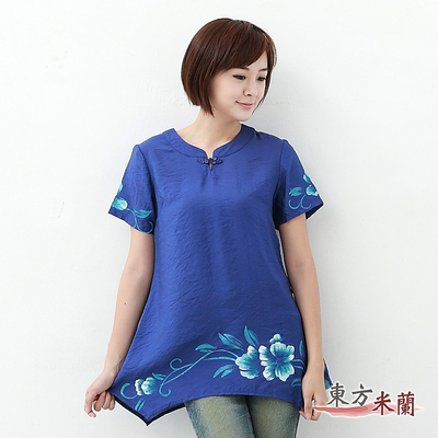 【東方米蘭】中國風服飾?藍色手繪花上衣