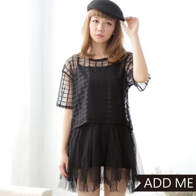 ADD ME 棉質拼接蓬蓬網紗背心襯裙(黑-共2色)