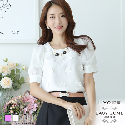 造型上衣 韓系圓領釘花雪紡上衣(共2色)LIYO理優