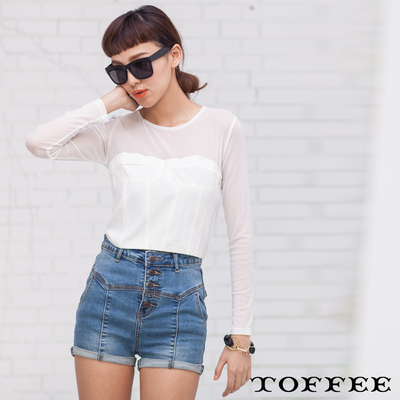 拼接網紗短版上衣-TOFFEE(素淨白)商品網址: