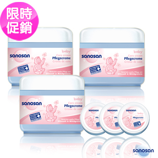 【福利品33折!德國Sanosan莎若森】寶貝護理雪花霜3+3入組(不含礦物油)