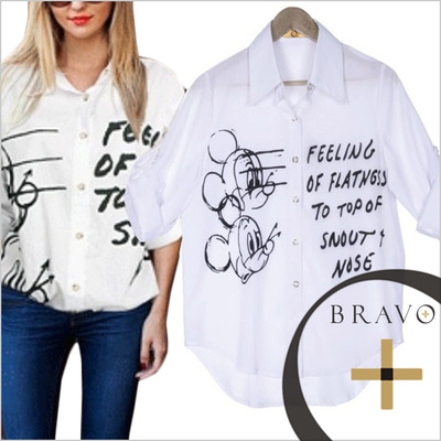米奇塗鴉印花純棉白襯衫 共二色 Bravo