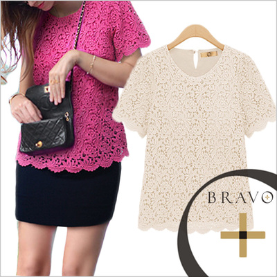 精緻勾花蕾絲拼接雪紡上衣?v Bravo