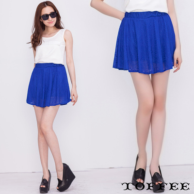 素面蕾絲腰頭鬆緊短裙-TOFFEE(風采藍)商品網址: