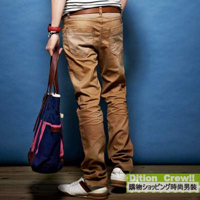 - 紳士休閒駝色牛仔褲+自然皺折相當有質感!