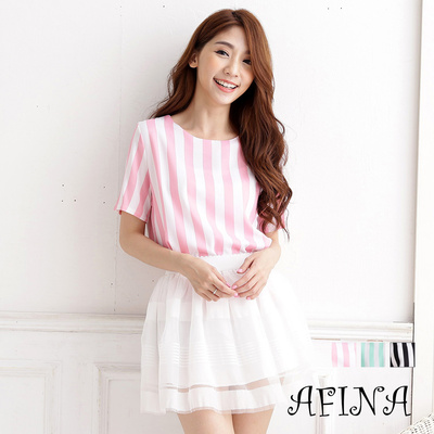 直條印花雪紡上衣-共3色-M~XXL AFINA商品網址:
