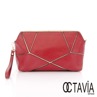 【Octavia 8 真皮】金屬拼圖 手拿肩背二用包(紅金紅)