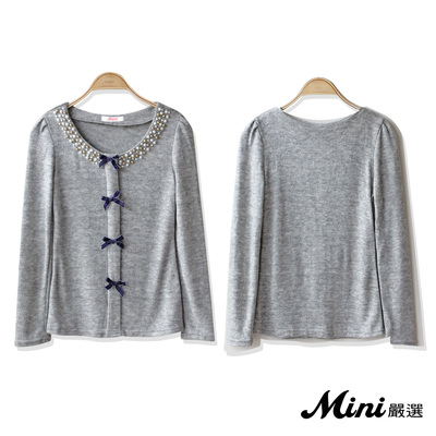 Mini嚴選 甜美氣質蝴蝶結針織上衣(淺灰)