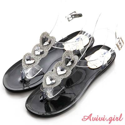 Avivi Girl 甜蜜邂逅心鑽平底涼鞋(黑)商品網址: