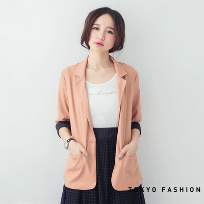 東京著衣 配色袖單扣西裝外套-S.M(共三色)