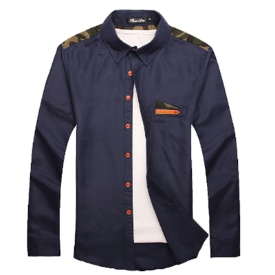 Kernel拼接迷彩皮標長袖襯衫-共二色