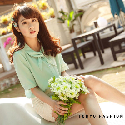 東京著衣 粉嫩素面領結襯衫-S.M(共四色)-4001096