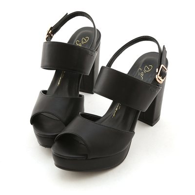 D+AF 韓潮指標?極簡寬帶復古魚口粗跟涼鞋*時尚黑商品網址:
