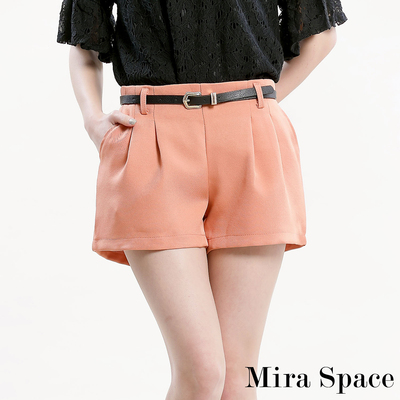 短褲 立體顯瘦打折西裝短褲(附皮帶)