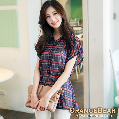 OB嚴選-格紋半開襟雪紡上衣.共二色