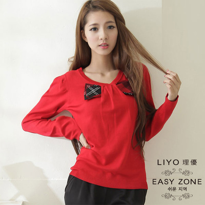 LIYO理優 蘇格蘭格紋圓領大蝴蝶結裝飾長袖上衣 7212 (共2色) F