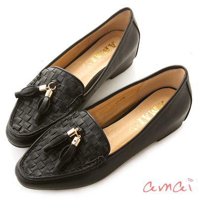 amai編織內增高休閒便鞋?流蘇冰沙色.經典黑