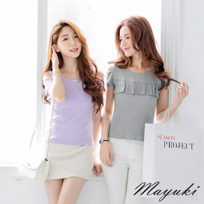 東京著衣-MAYUKI 挖肩荷葉羅紋棉料上衣(共四色)