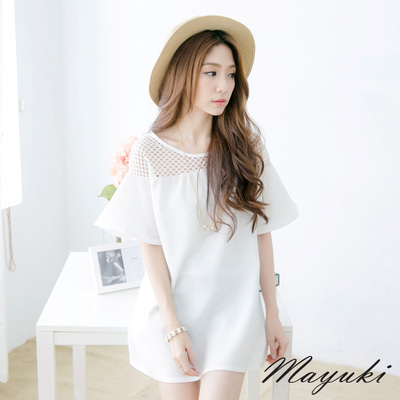 直到網友Michael介紹我上網買了一件東京著衣-MAYUKI 附項鍊透視網布拼接寬袖上衣-S.M(共三色),想不到品質和剪裁真的和夜市OR路邊攤差很多!!
