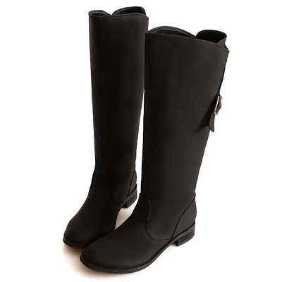 Ann’S帥氣迷人.後交叉釦帶素面長靴*黑