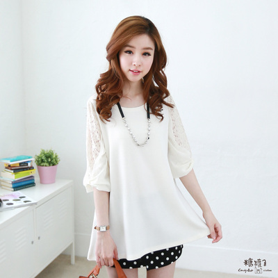 糖罐子-緹花雪紡袖寬襬棉衫(共二色)