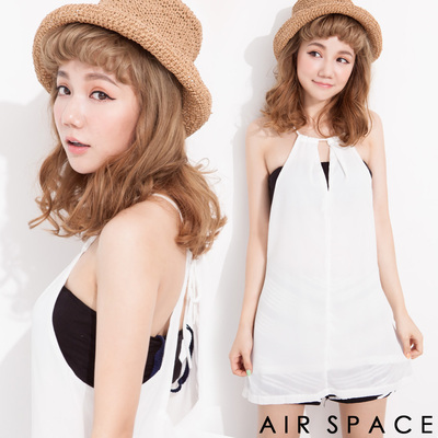 AIR SPACE 繫帶挖肩後綁帶雪紡背心上衣(簡約白)