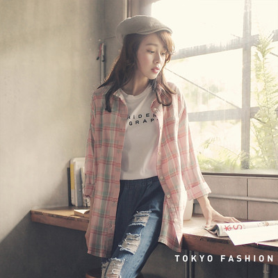 東京著衣 淺色格紋寬版棉襯衫(共二色)