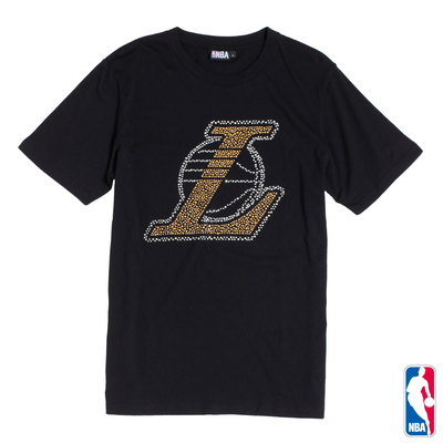 NBA-洛杉磯湖人隊貼鑽圓領短T-黑(男)