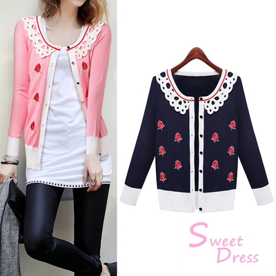 玫瑰圖案娃娃領針織外套(共二色)Sweet Dress商品網址: