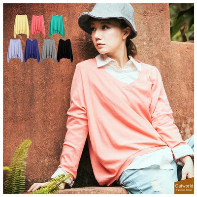 我覺得針織V領長袖上衣共七色Catworld不僅穿起來合身舒適,自己感覺也變很有時尚的FU!!(哈哈哈!!!!)