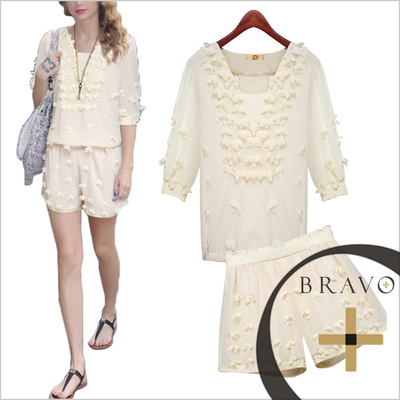 立體花朵珍珠亮片雪紡短褲套裝 Bravo商品網址: