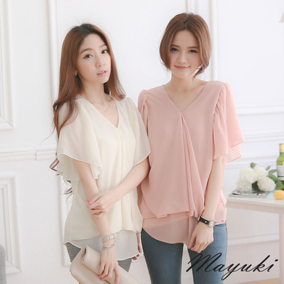東京著衣-MAYUKI V領垂墜感雪紡上衣-S.M(共四色)