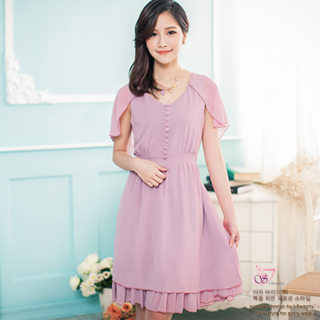 【I-Sweety中大碼】3502甜美波浪袖小垂領洋裝-附綁帶(兩色)商品網址: http://www.momoshop.com.tw/goods/GoodsDetail.jsp?i_code=266...