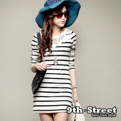 9th Street 春芬聚焦蕾絲OL條紋曲線洋裝商品網址: