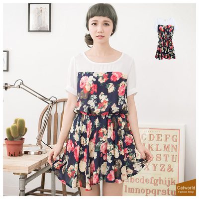 直到網友Michael介紹我上網買了一件雪紡拼接印花洋裝深藍色 Catworld,想不到品質和剪裁真的和夜市OR路邊攤差很多!!