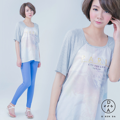 ORENDA-巴黎淡彩印花上衣-S.M.L-麻灰