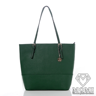 【MOMI】MOSS簡約金牌十字細紋牛皮托特包 - 森林綠