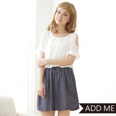 ADD ME 挖肩拼接幾何縮腰短洋裝