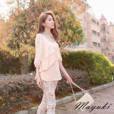 東京著衣-MAYUKI 綴珠荷葉層次雪紡上衣-S.M(共三色)