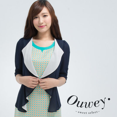 • OUWEY歐薇 雪紡撞色抽皺袖罩衫